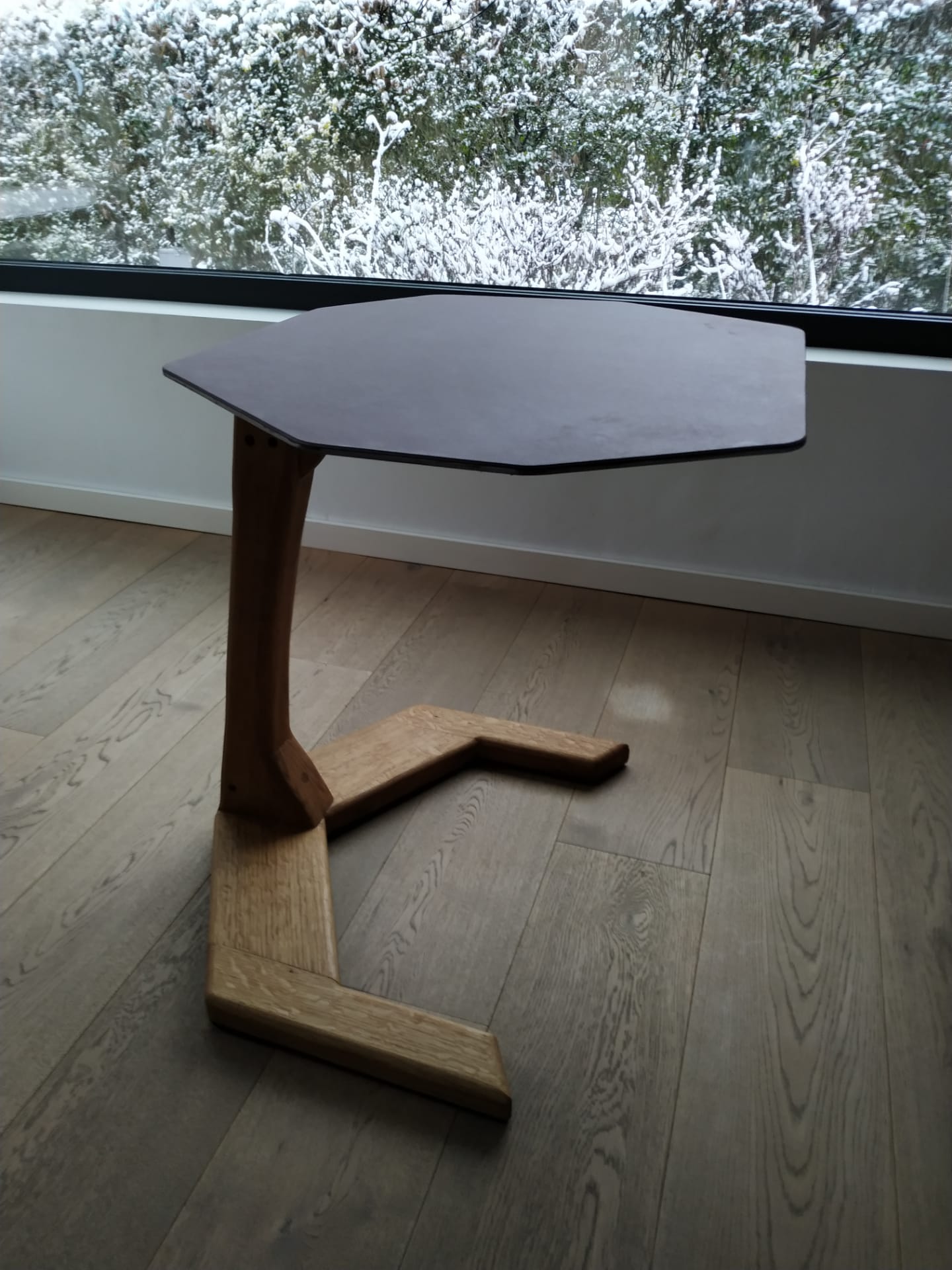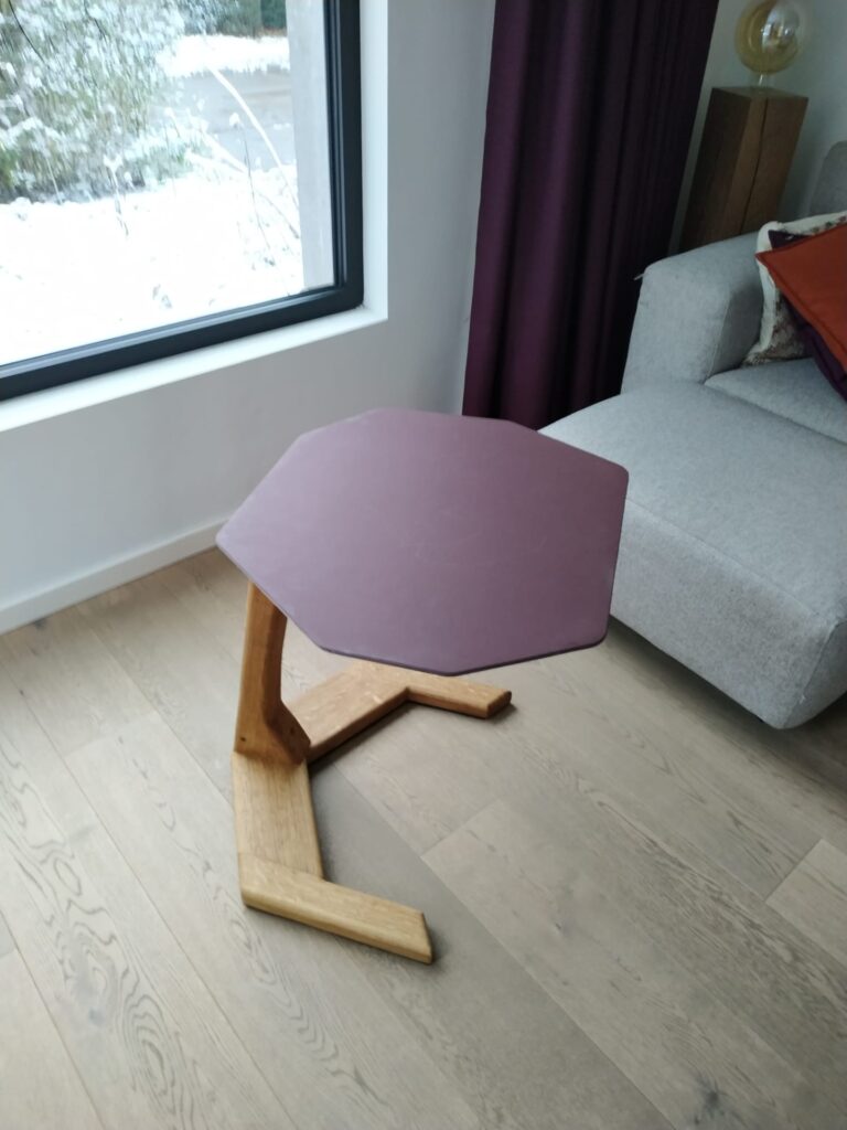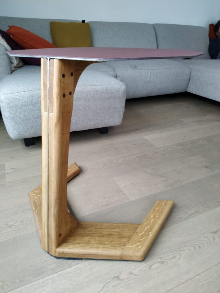 Bijzettafel: Eik, staal, linoleum
