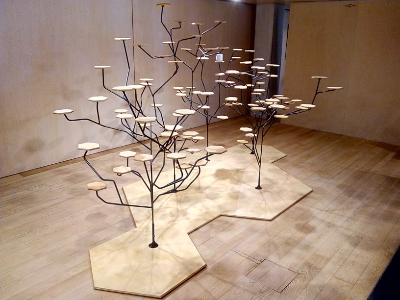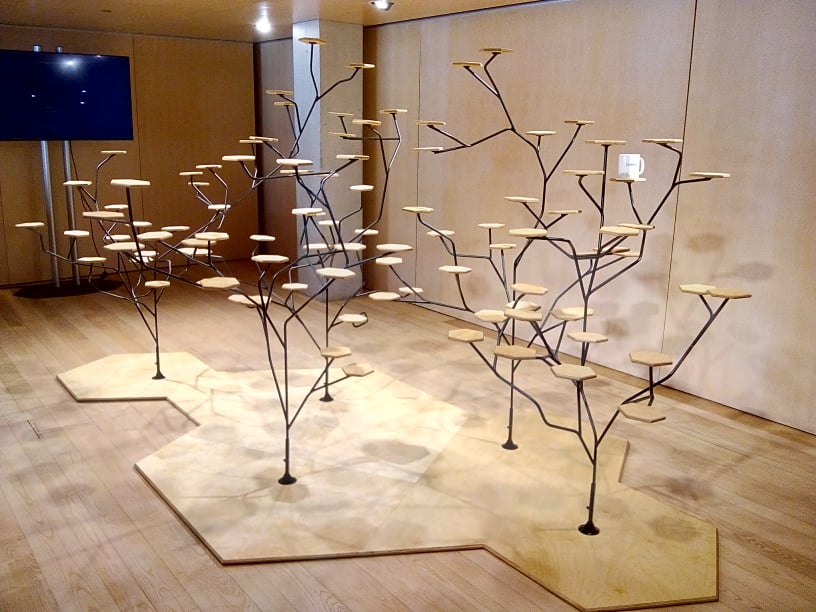 Human Labels Ontwerp en uitvoering ter ondersteuning van ‘Human Labels’-installatie van Peter De Bruyne in Concertgebouw BruggeStaal en Berkenmultiplex Gold 2 desk