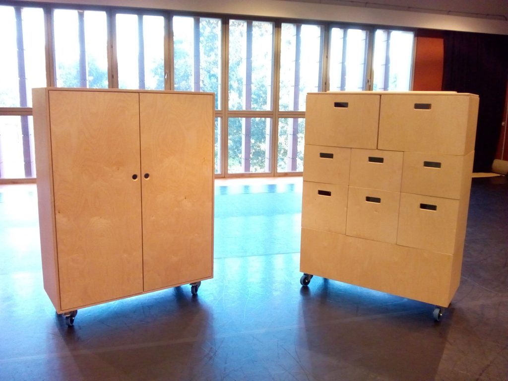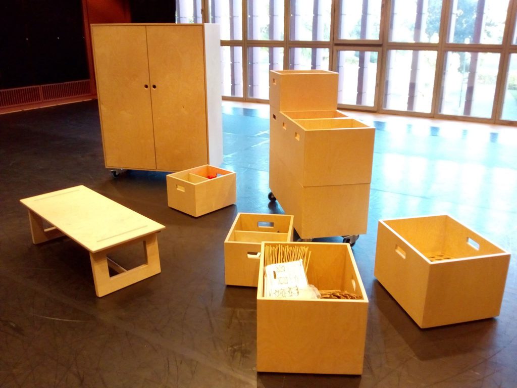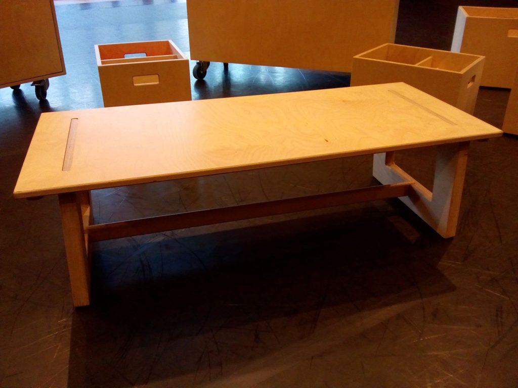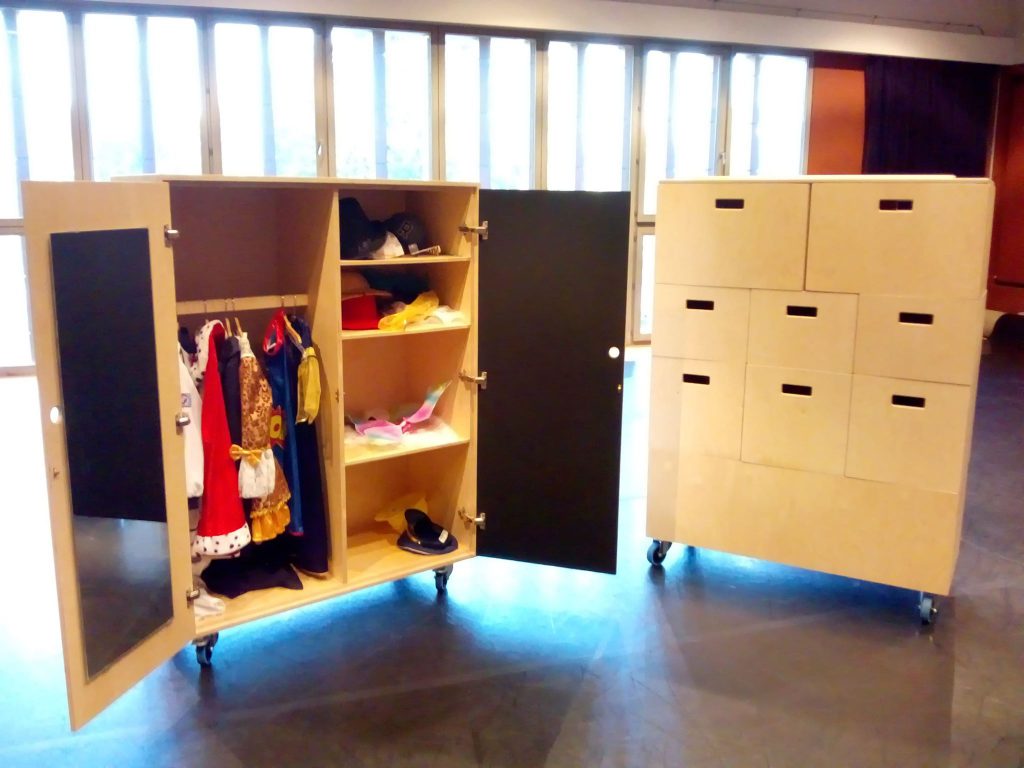 Kast + speelboxen + tafel Berk multiplex flatpack tafel/bank+verkleedkast+speelgoedboxen stapelbaar Illustratie Gold 1 Gold 2